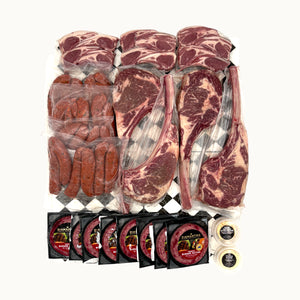 With massive Angus tomahawk steaks, tender lamb cutlets, flavour-packed Wagyu sausages, and rich Wagyu burger patties, this is a statement spread designed for serious entertaining and next-level grilling.